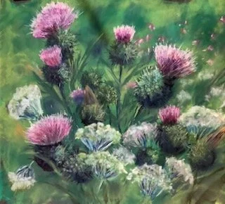 Now retired, I am now able to recommit myself to creating my art, teaching beginning watercolor and being involved in my local art community. I have worked in many media types over the years, from clay and fiber to painting. Currently, I am concentrating on pastels and watercolor and strive daily to improve at my craft and enjoy the making and learning process. Plein Air painting and taking the time to “Look until you really see” gives me much pleasure, and I am attempting to spend more time painting in nature.